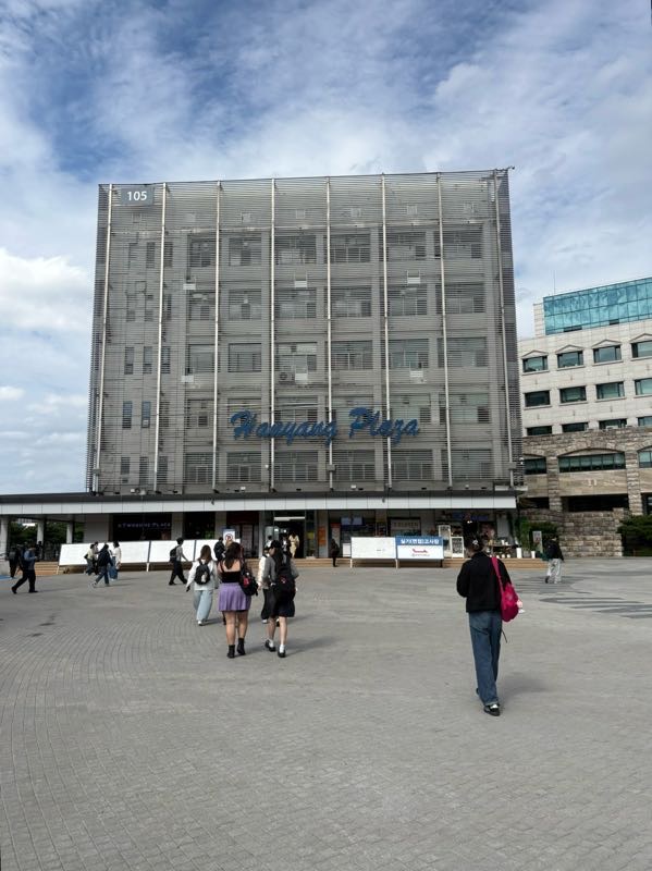 駅を抜けると目の前に漢陽大学の広場と漢陽プラザがあります。漢陽プラザの中には食堂やコンビニ、ゴンチャなどがあります。なので授業の間に飲み物を買いに来る生徒の方もたくさんいます。