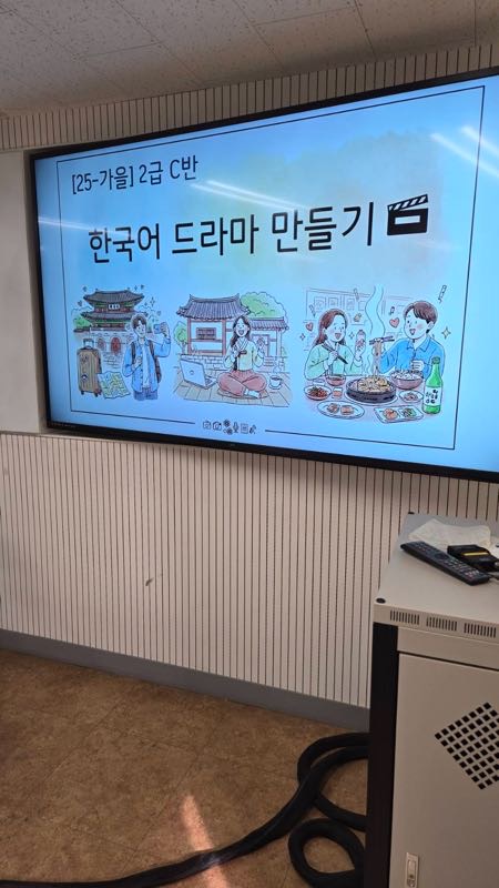 学期末課題の様子をお見せします!級によって課題内容は異なりますが、2級は「한국어 드라마(韓国語ドラマ)」を作りました。習った文法を使いながら原稿を作り動画を撮って編集!!5分程度のドラマですが各班面白い動画を作ることが出来ました!秋学期は残り2週間となり、今のクラスを離れることが寂しいです🥲︎ ですが、進級できるよう勉強も頑張りつつクラスでも楽しい思い出を作っていきます!